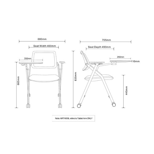 • Rapidline Air Training Chair Tablet Arm Only Black