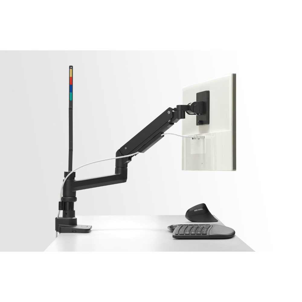 • Clamp and grommet options for versatile desk attachment.