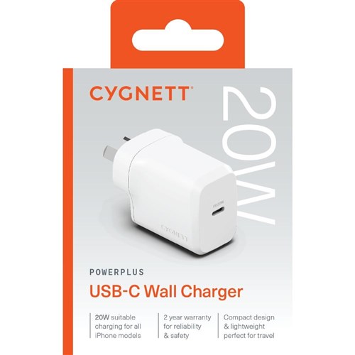 • Cygnett PowerPlus 20W USB-C Fast Wall Charger White