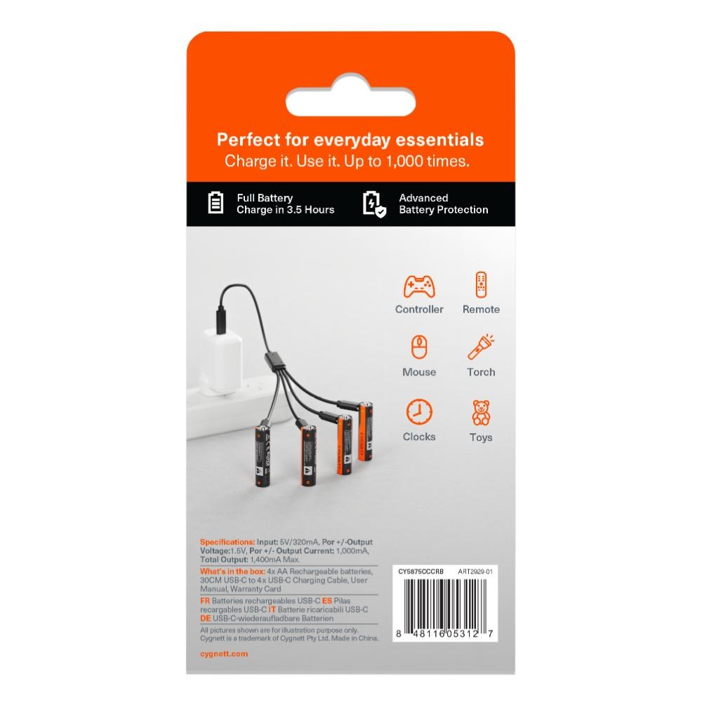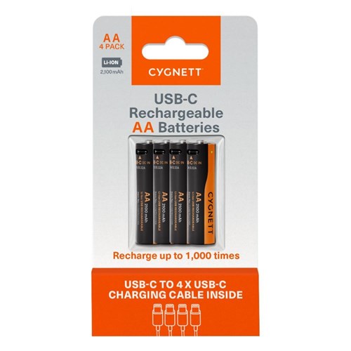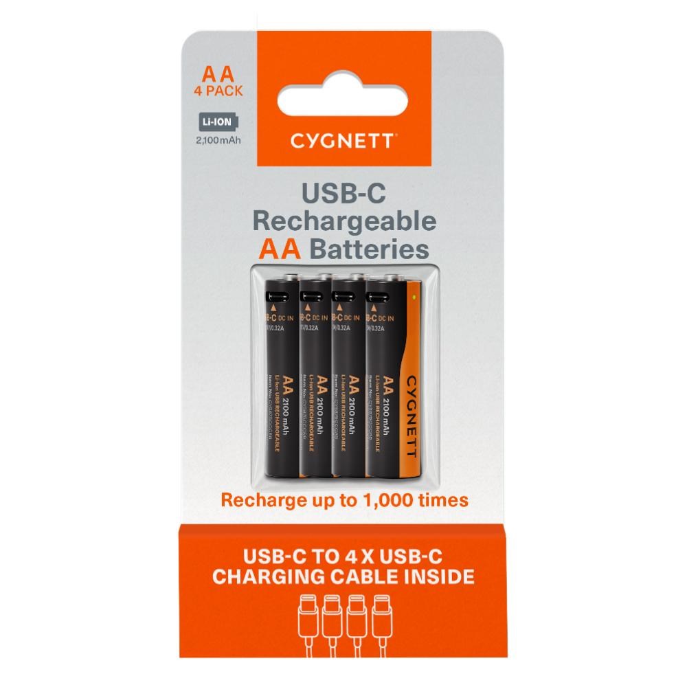 Cygnett USB Rechargeable Battery Size AA Pack Of 4
