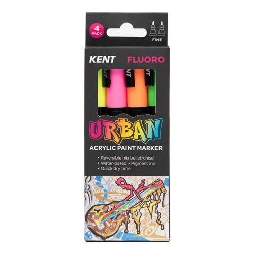 • Kent Urban Paint Markers Fine 3mm Dual Nib Fluoro Assorted Pack Of 4