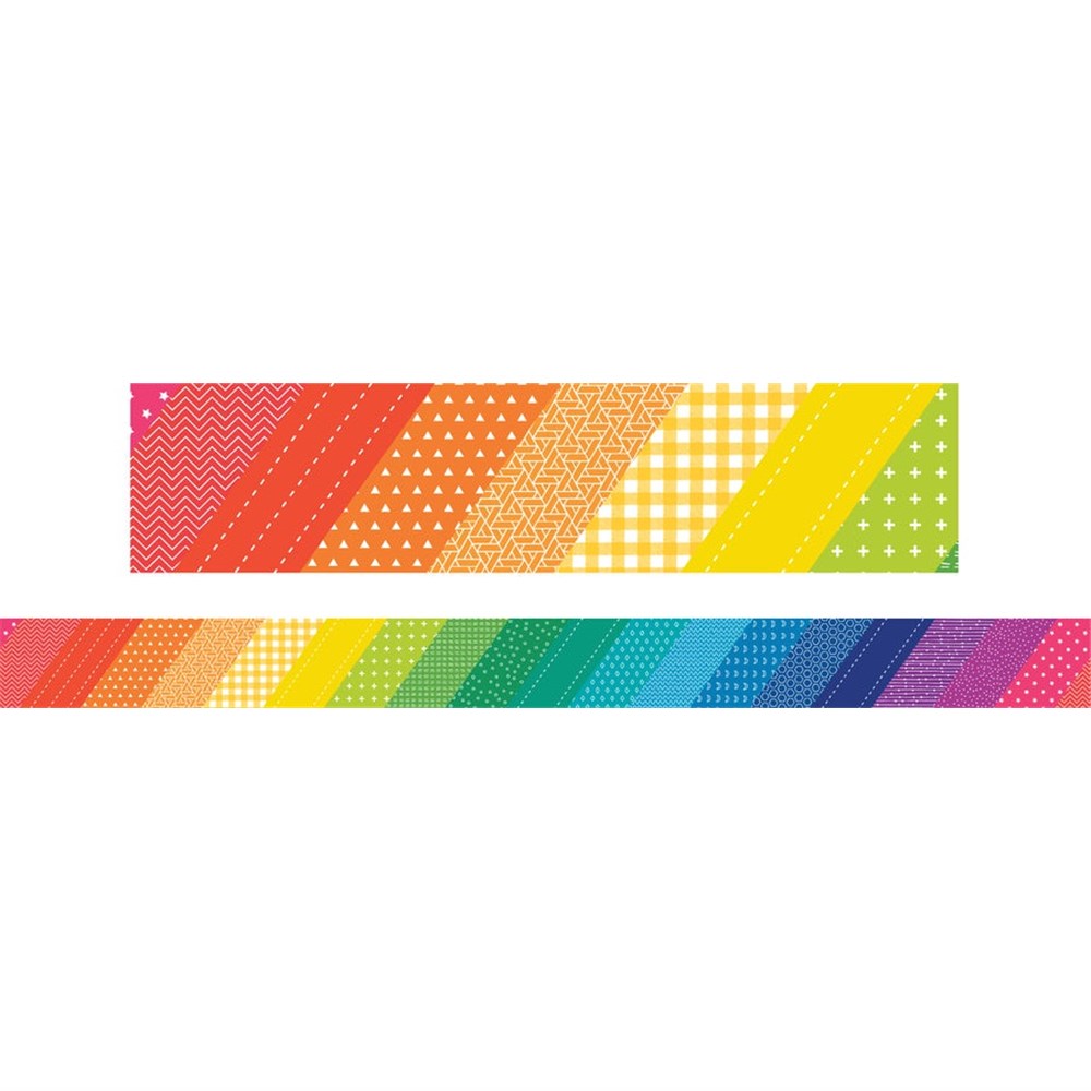 Add instant impact to your classroom with Rainbow Patterns Borders! Featuring bold diagonal stripes in a mix of bright rainbow colours and playful patterns, these eye-catching borders are perfect for framing bulletin boards, whiteboards, doors and displays, bringing energy and colour to any learning space.