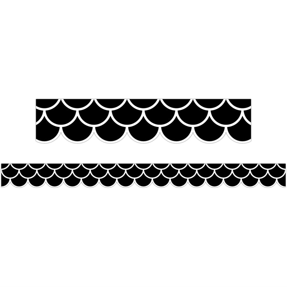 Add a bold finishing touch to your classroom with the Black Scallops Border. Featuring rows of black scallops with a crisp white outline, this striking design is perfect for framing bulletin boards, whiteboards, doors and displays, bringing contrast and modern simplicity to any learning space.