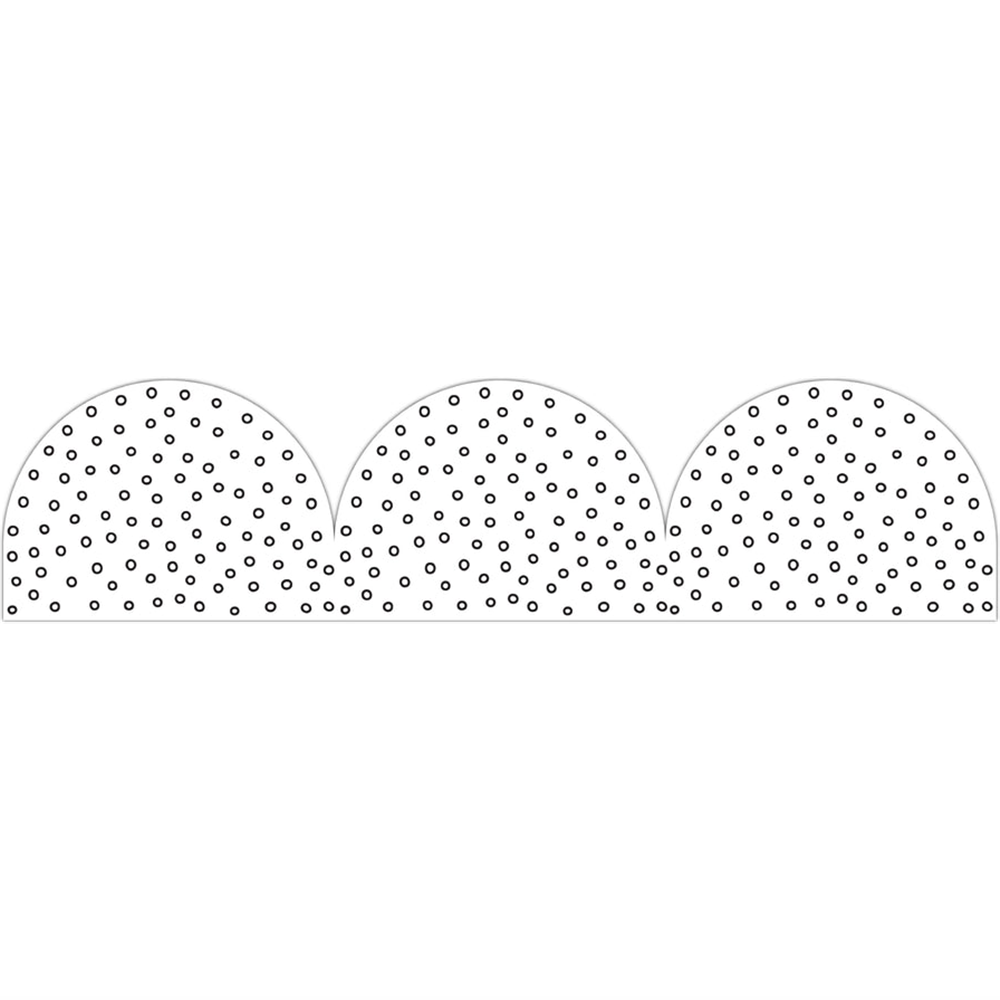 Add a classic and bold touch to your classroom with the Black and White Dots Rolled Scalloped Border. Featuring a clean white background decorated with a striking pattern of black circles, this scalloped border roll is perfect for framing bulletin boards, whiteboards, doors and displays, bringing timeless contrast and style to any learning space.