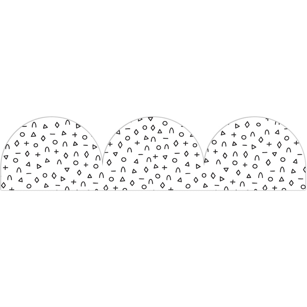 Add a playful monochrome touch to your classroom with the Black and White Patterned Rolled Scalloped Border. Featuring a white background with a mix of black shapes, this scalloped border roll is perfect for framing bulletin boards, whiteboards, doors and displays, bringing a modern and eye-catching edge to any learning space.