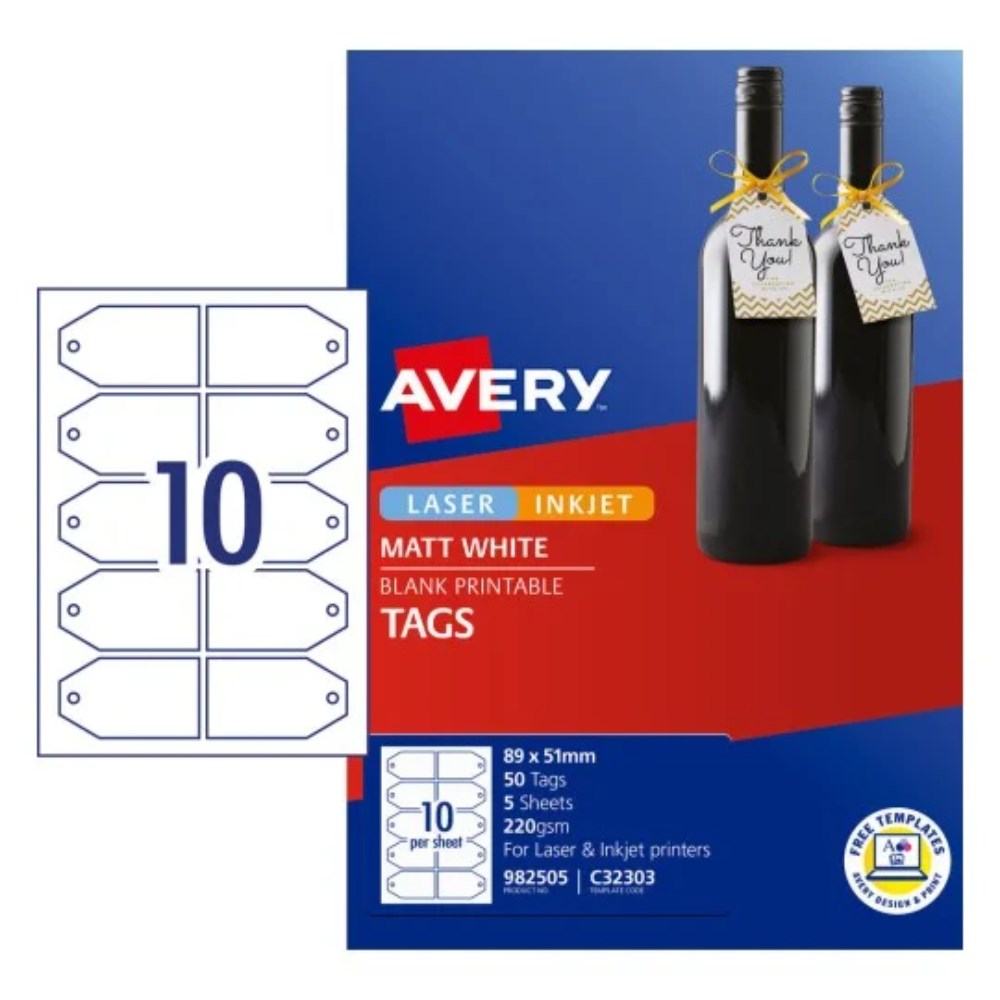 Avery Blank Printable Gift Tag Labels C32303 89 x 51mm Matte White 10UP 50 Tags 5 Sheets