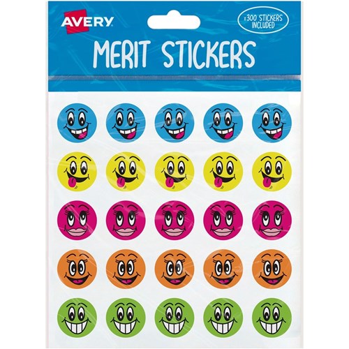 Avery Merit Stickers Smiley Faces Round 22mm 5 Designs Assorted 300 Stickers