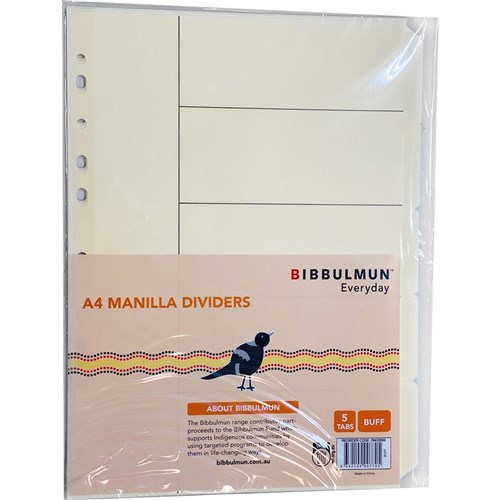 Bibbulmun Manilla Divider A4 5 Tab Plain Buff