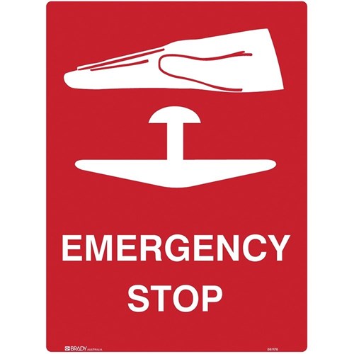 Brady Emergency Sign Emergency Stop 450W x 600mmH Polypropylene White/Red