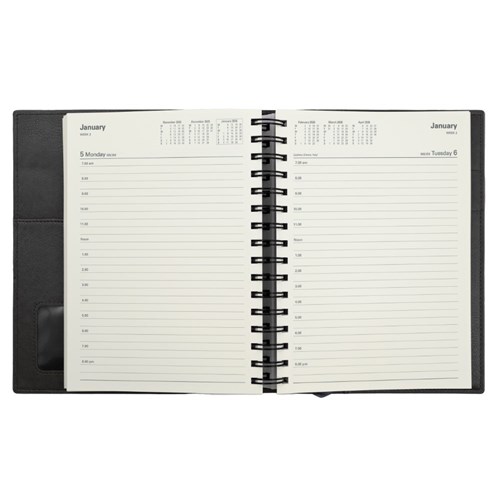 • Ideal for those 'on the move' with its double wiro binding and heavily grained metallic and matt PU cover.