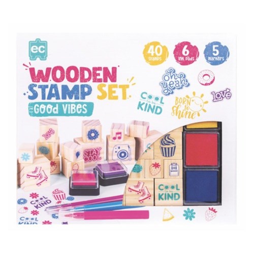 The EC Wooden Stamp Sets are thoughtfully designed to spark imagination and hands-on creativity through themed stamping adventures. Each set includes 40 detailed wooden stamps, six vibrant ink pads, and five coloured markers—everything young artists need to create bold, expressive artworks. With five engaging themes—All About Animals, Things That Go!, Once Upon A Time, Dinosaurs, and Good Vibes!—children can explore everything from wild creatures and vehicles to fairytales, fossils, and positive affirmations. The sturdy wooden blocks are easy for small hands to grip and stamp, helping to develop fine motor control while encouraging storytelling, scene building, and playful expression. All materials are neatly packed in a durable wooden storage box, making these sets ideal for classroom use, art corners, and group activities.