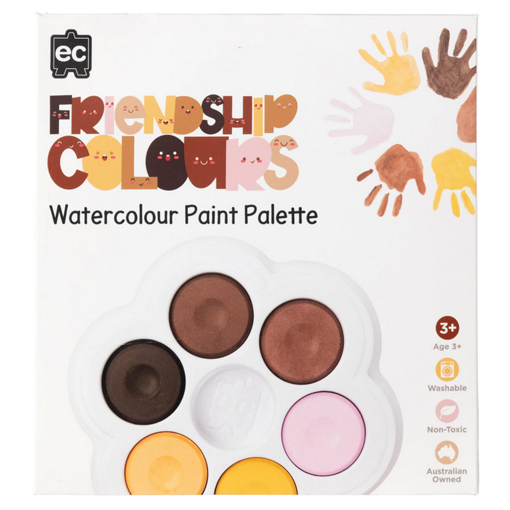 Paint a world of friendship with the Friendship Colours Watercolour Paint Palette! This easy-to-use palette includes six watercolour paint discs, perfect for creating expressive and inclusive artwork. Easy to blend and apply, these watercolours are ideal for young artists. Washable, non-toxic and proudly Australian owned, this palette encourages creativity in every colour.
