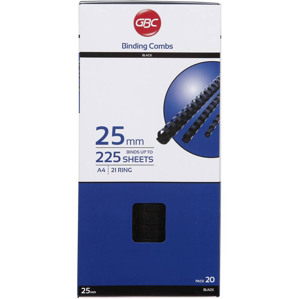GBC Plastic Binding Comb 25mm 21 Loop 225 Sheets Capacity Black Pack Of 20