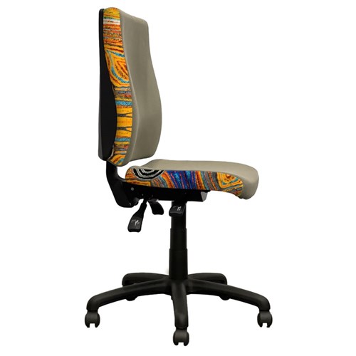 • A unique commercial fabrics designed by Mary Napangardi Brown (Indigenous artist) combined with K2 Mist Grey Fabric to upholster the chair.