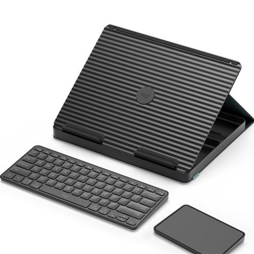 • One compact kit with a wireless keyboard, wireless touchpad and a book-like case that transforms into a laptop stand.