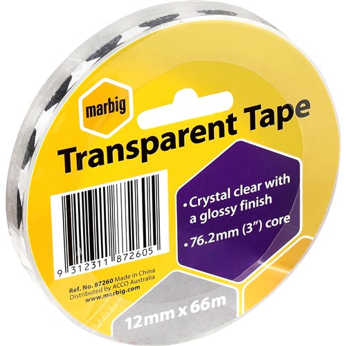 Marbig Office Tape 12mm x 66m 76.2mm Core Clear