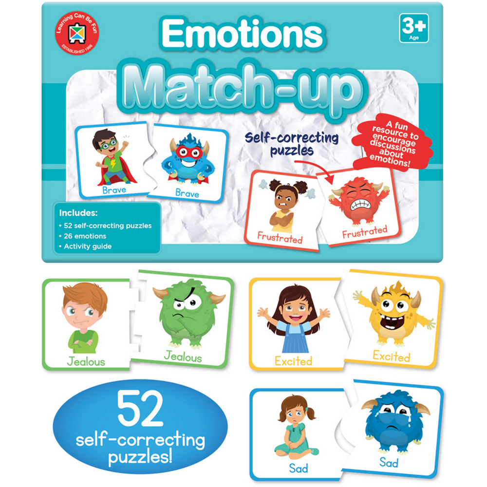 Emotions Match-up is the perfect resource to encourage meaningful conversations and discussions about our emotions in a thoughtful and easy-to-understand way.0Becoming familiar with different emotions is important for young children developing their social skills.0This set of 52 puzzles, includes 26 different emotions and will help young learners identify the feelings they and other people typically experience, from happy to anxious and sad to excited.