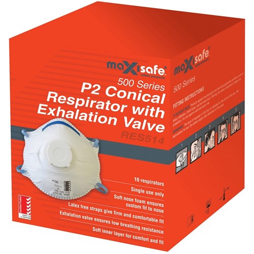 Maxisafe P2V Conical Respirator White Box of 10