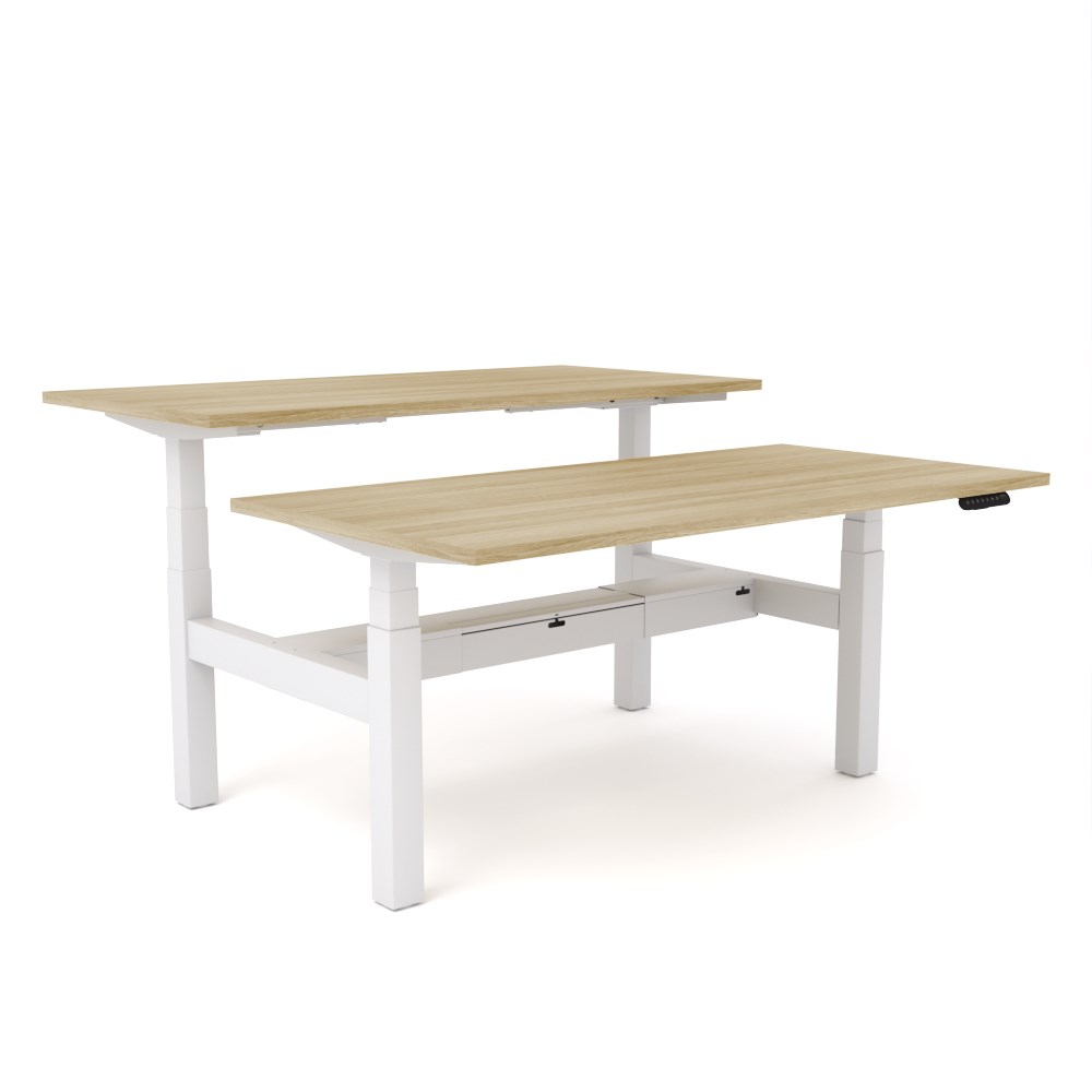 OLG Agile Motion Double Sided Desk + Cable Tray 1800Wx1500Dx 620-1270mmH White/New Oak