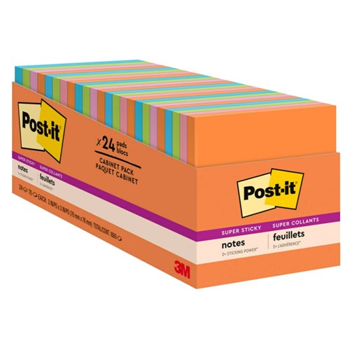 Post-It 654-24SSAU-CP Super Sticky Notes 76mmx76mm Energy Boost Pack of 24 516438 In Stock Low Stock Out Of Stock Please See Attributes 1