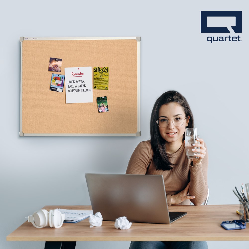 • The Quartet corkboard with an aluminium frame is designed to enhance creativity and communication in any setting.