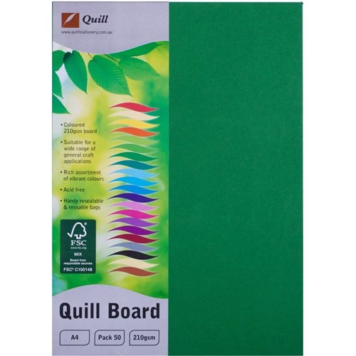 Quill Board A4 210gsm Emerald Pack of 50