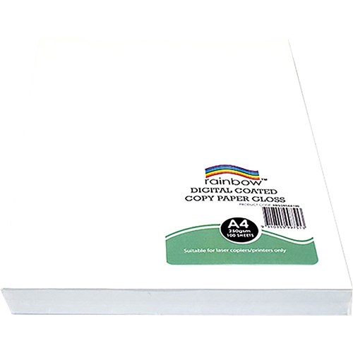 Rainbow Premium Digital Copy Paper Gloss A4 250gsm White Pack of 100 Sheets
