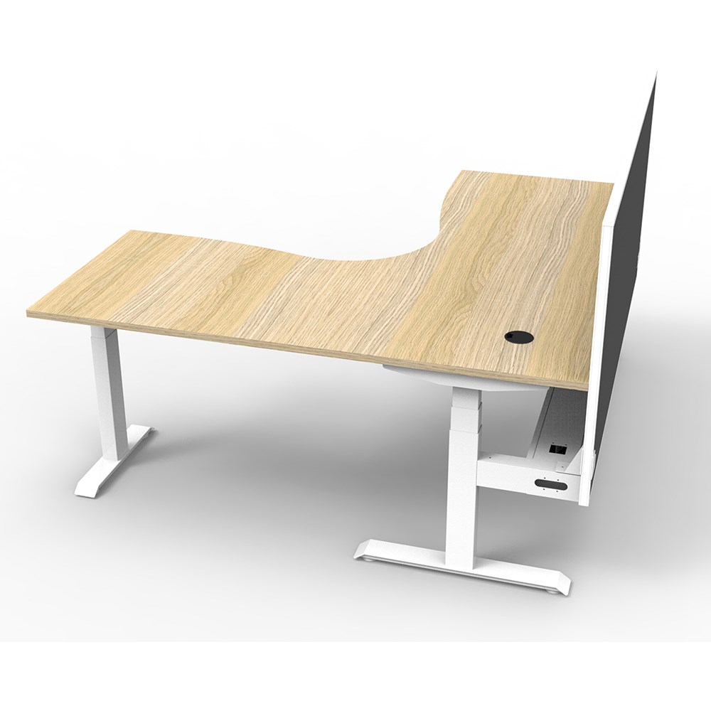 • Dual Motor 3 stage motorised legs. Corner Workstation with Cable Tray and Screen.
