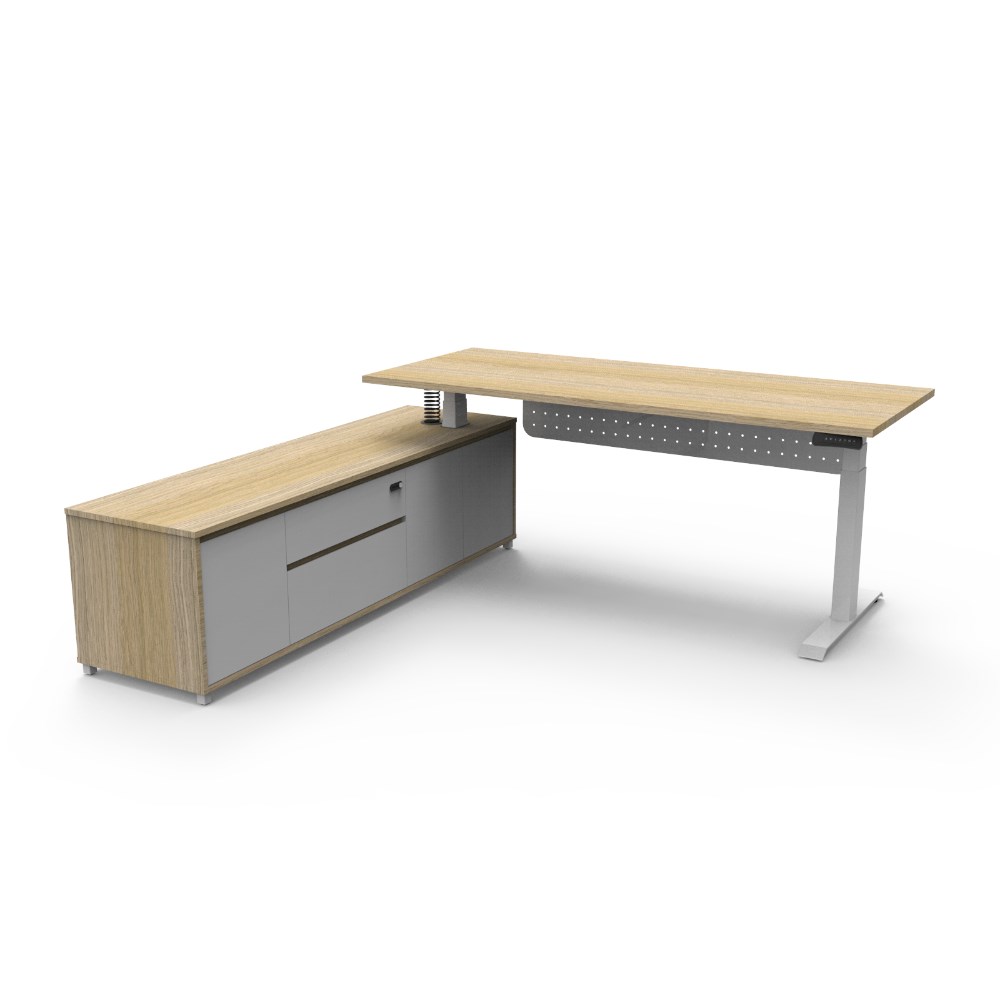 Rapidline Boost+ Executive Desk + LHS Cabinet+Panel 2020W x 2011D x 620-1270mmH Oak/Wht