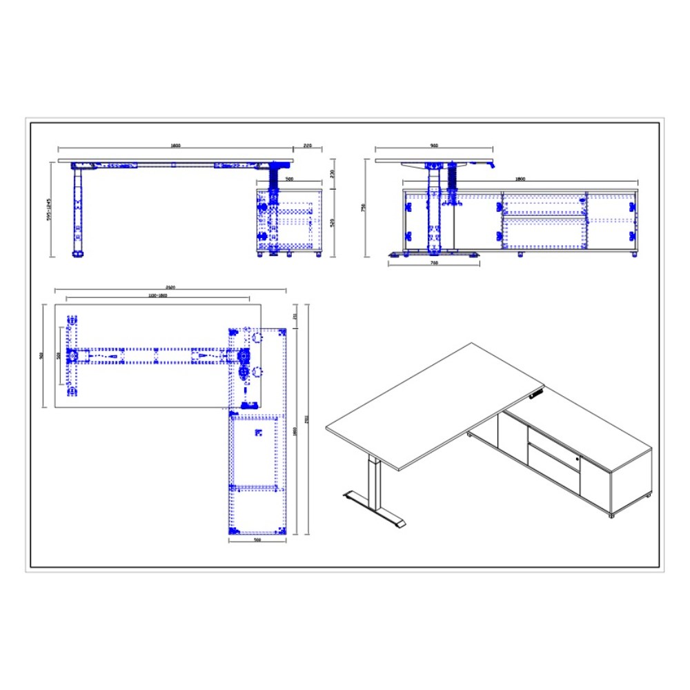 • Desk Dimensions: 1800W x 900D x 620-1270mmH.