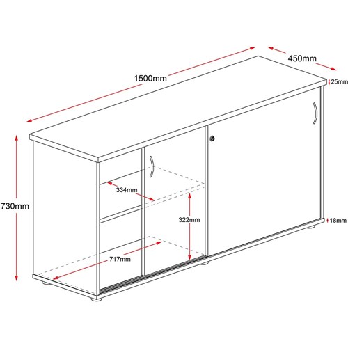 Rapidline Credenza Sliding Doors 1500W x 450D x 730mmH Oak And Ironstone