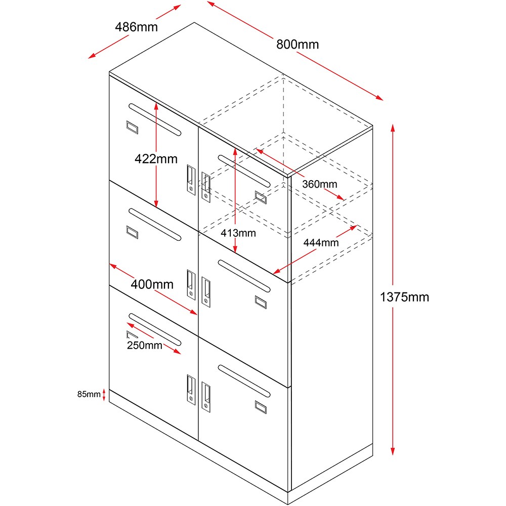 • Individual locker size 360W x 470D x 420mmH.