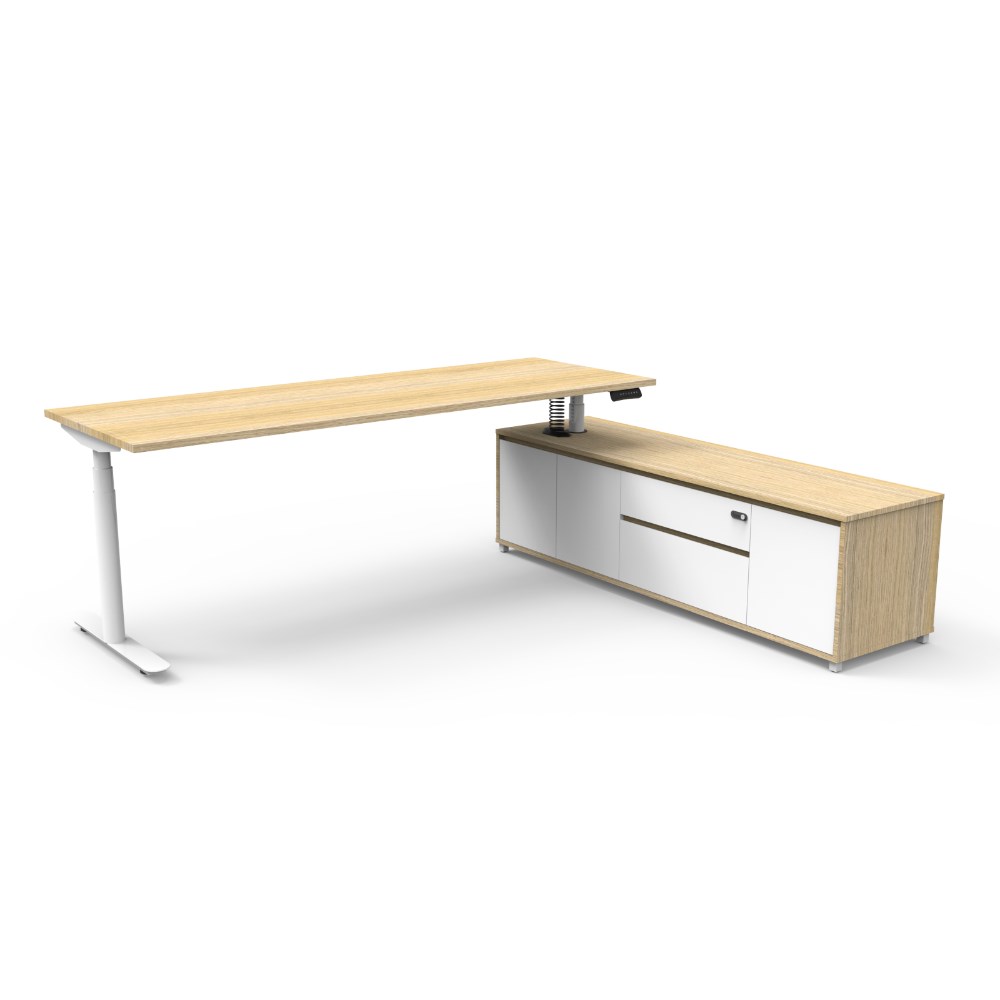 Rapidline Halo+ Executive Desk + RHS Cabinet 2270W x 1936D x 620-1270mmH Oak/White