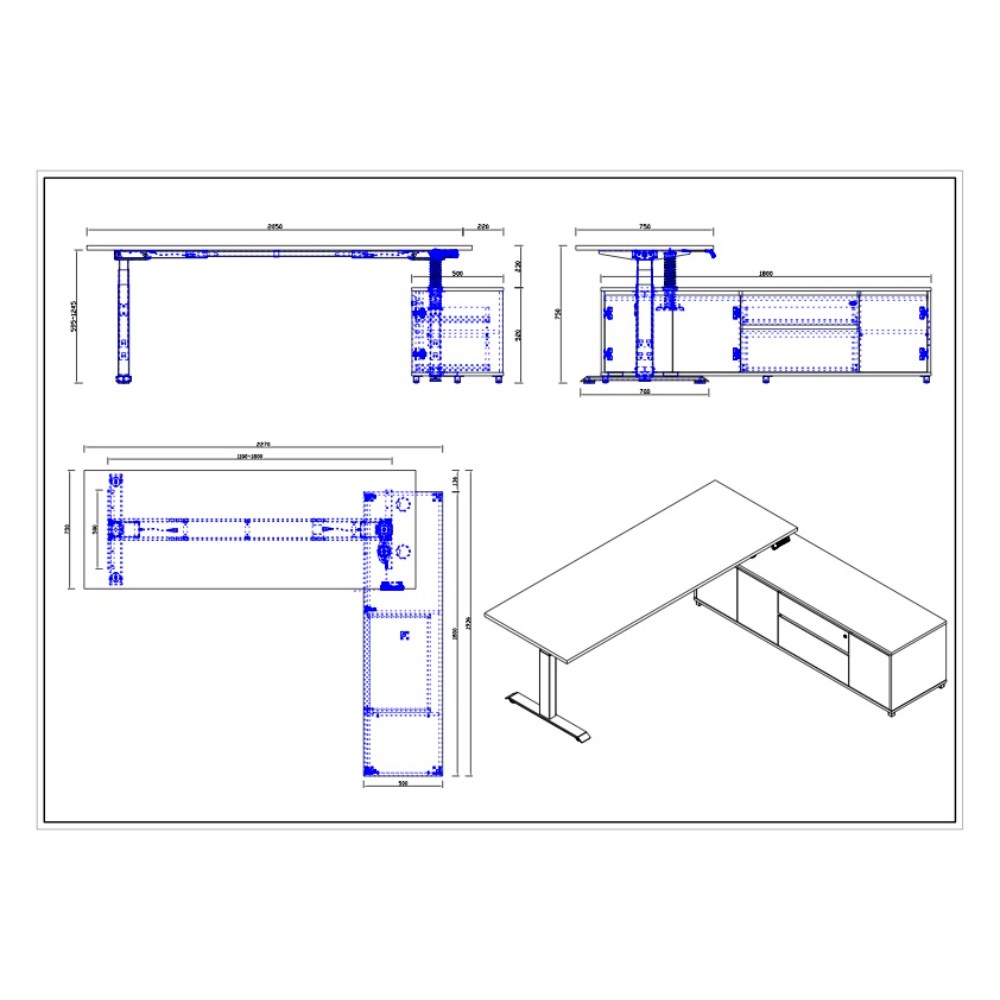 • Desk Dimensions: 2100W x 750D x 620-1270mmH.