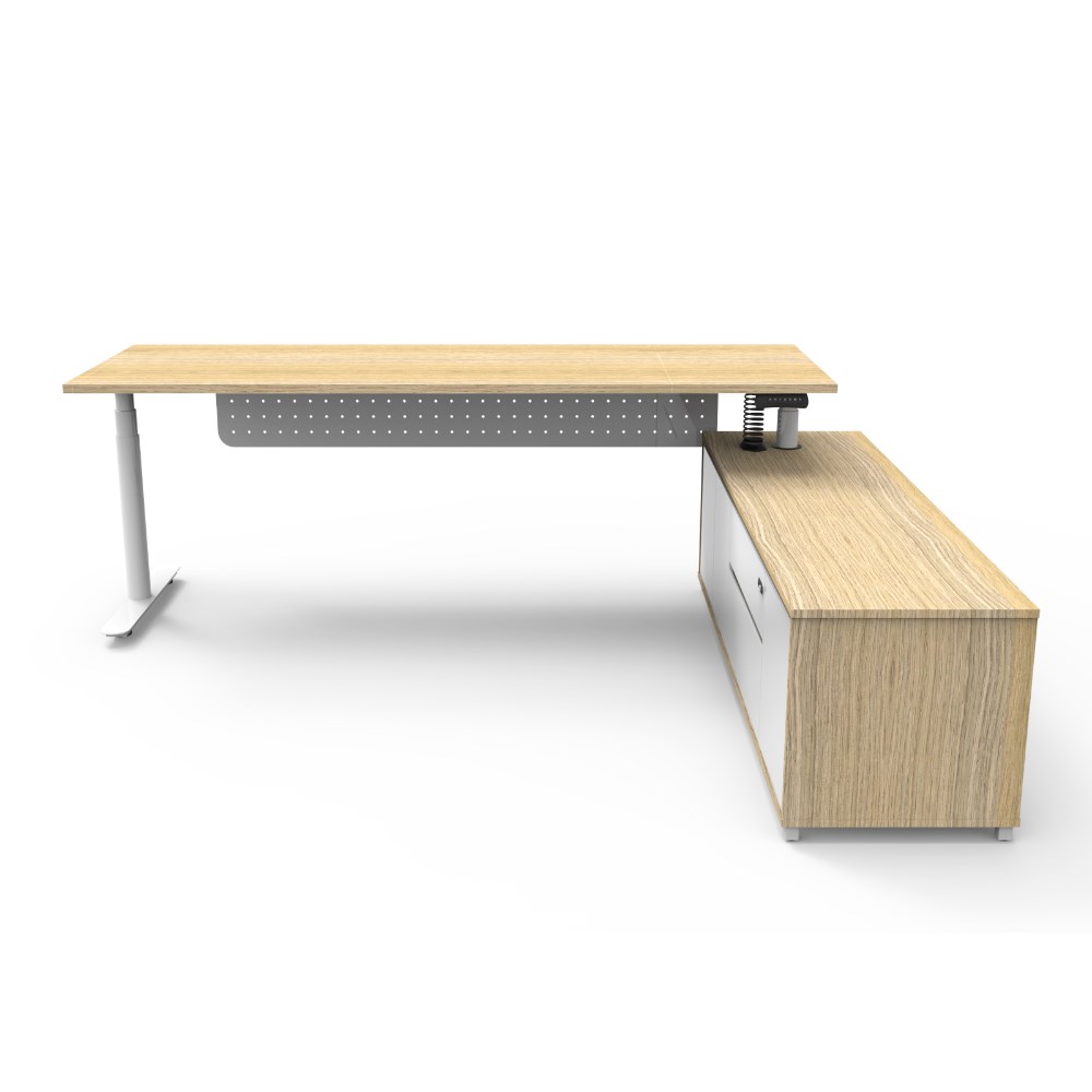 Rapidline Halo+ Executive Desk + RHS Cabinet + Panel 2270W x 1936D x 620-1270mmH Oak/White