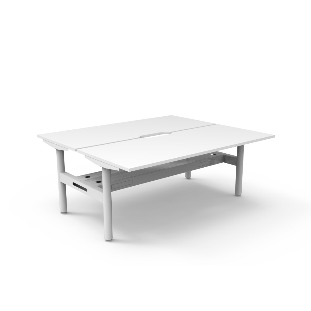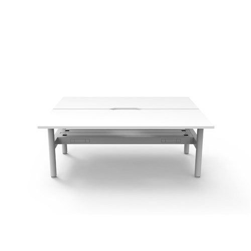 • Natural White top White Satin frame. Double sided workstation with cable tray.