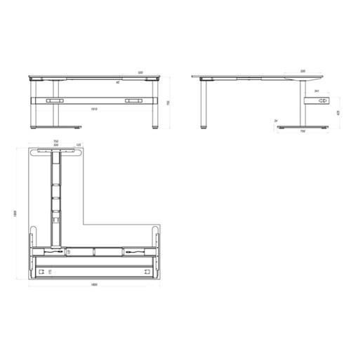 • Desk Dimensions: 1800W x 1800W x 750D x 730mmH. Height With Screen: 1330mm.