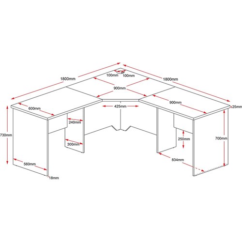 Rapidline Rapid Worker Corner Workstation 1800/1800W x 600D x 730mmH White And Ironstone