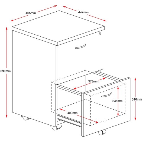 Rapidline Rapid Worker Mobile Pedestal 2 File Drawer 465W x 447D x 690mmH Ironstone
