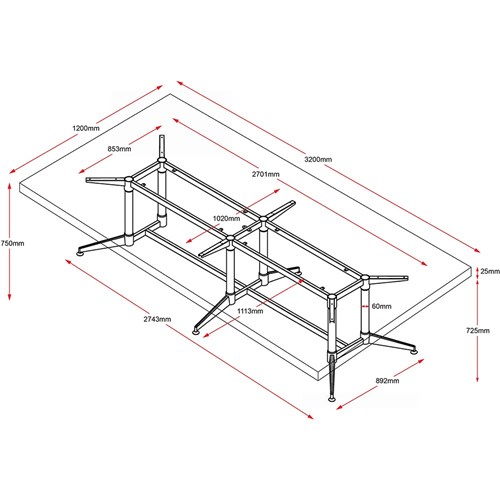 • Black powder coated frame and rails and polished aluminium feet with adjustable feet.