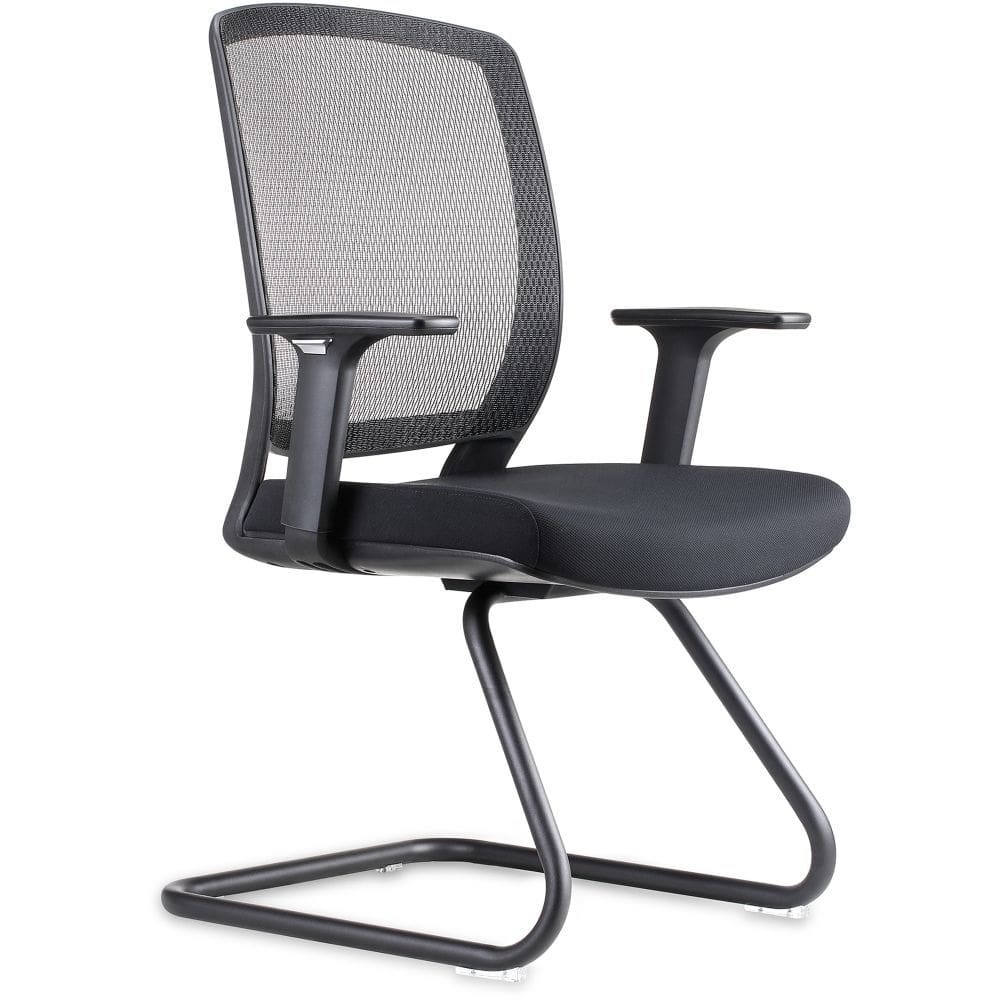 • Mesh back visitor chair with ample seat and back size and adjustable arms, with modern black cantilever base. Ideal visitor chair to go with any mesh back desk chair or use as meeting chair.