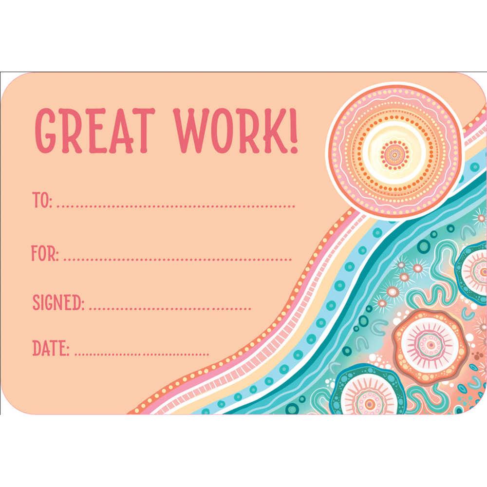 Celebrate success with the Sacred Country Great Work certificates, featuring vibrant First Nations artwork by Holly Sanders. Designed to recognise achievement, dedication and personal growth, these certificates offer a meaningful way to acknowledge students for their hard work, learning