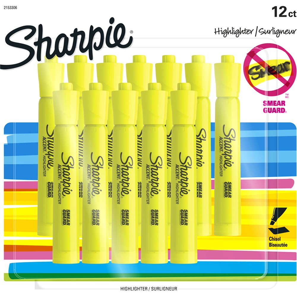 • Sharpie Tank Highlighters with wide barrel and large ink supply that delivers dependable highlighting.