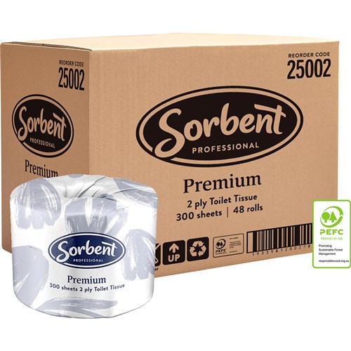 Sorbent Professional Premium Toilet Tissue Rolls 2 Ply 300 Sheets Carton of 48