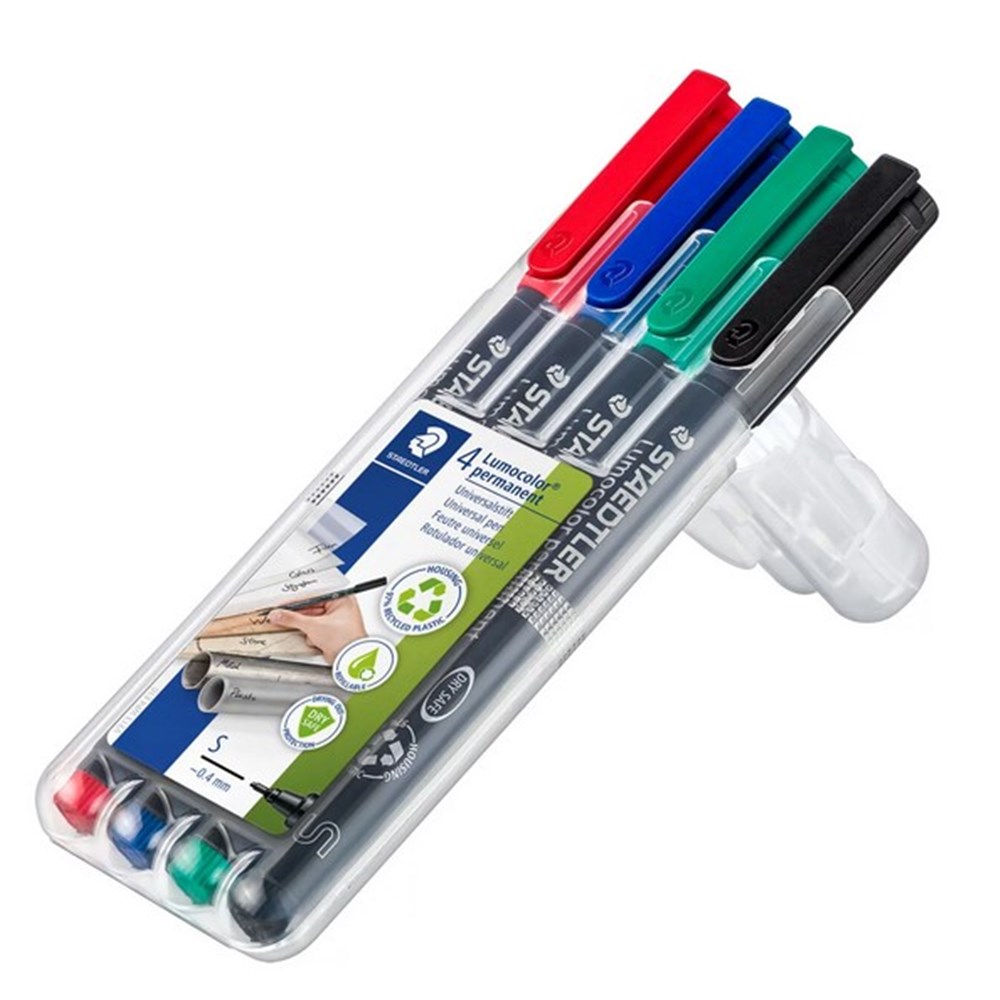Staedtler 313 Lumocolor Permanent Pens Superfine 0.4mm Assorted Colours Wallet Of 4