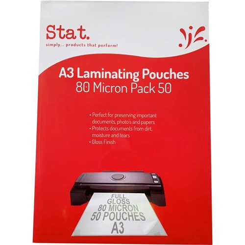 Stat Laminating Pouch A3 80 Micron Gloss Pack of 50