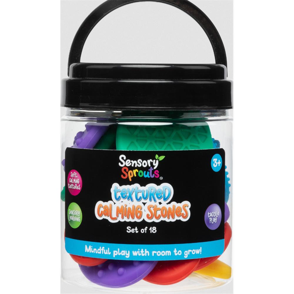 Encourage calm and focus with this set of 18 Textured Calming Stones in bright colours, designed to support sensory regulation and tactile learning. Each stone features a different texture such as smooth, bumpy, ridged, and more, inviting students to explore through touch and develop sensory awareness.