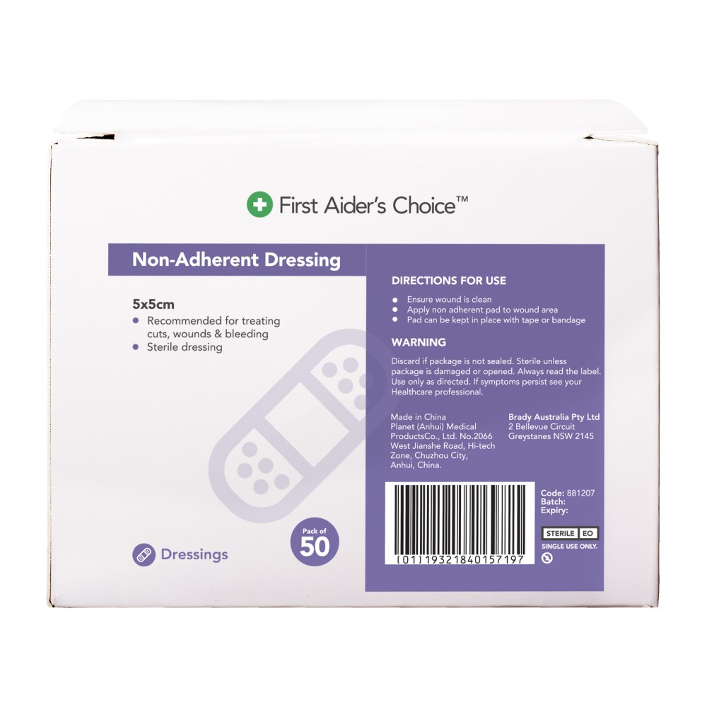 Trafalgar First Aider's Choice Non-Adherent Dressing 5 x 5cm White Box Of 50