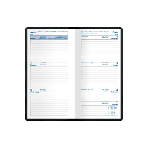 Upward Standard Pocket Diary A6/7 Week To View Black