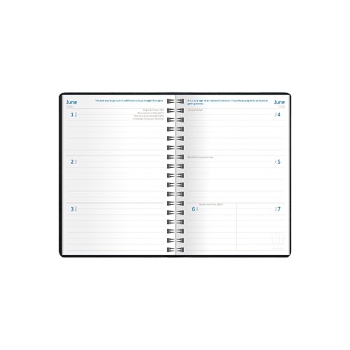 • Featuring a padded, phthalate free, PVC cover, pockets for storing business cards and wire-o binding to allow the diary to lie completely flat when open.
